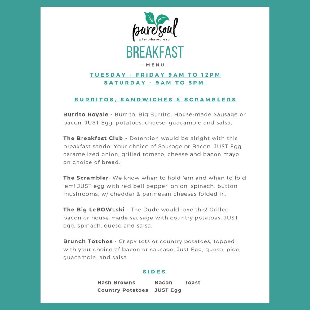 Pure Soul Plant-Based Eats Menu